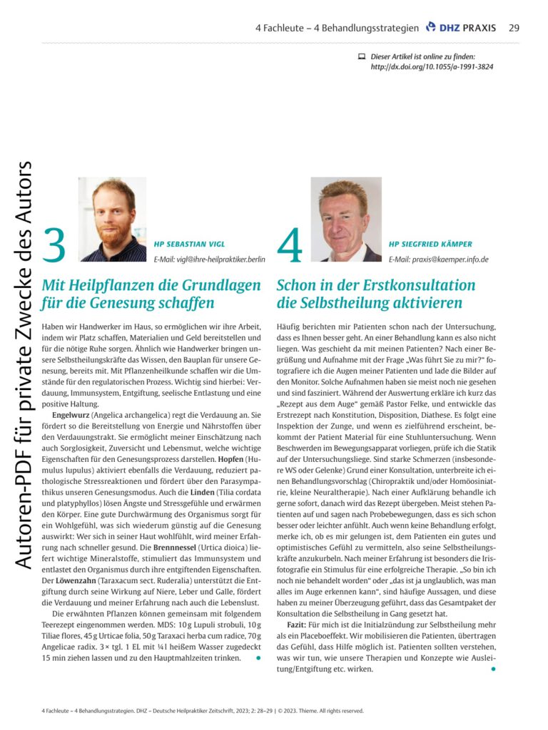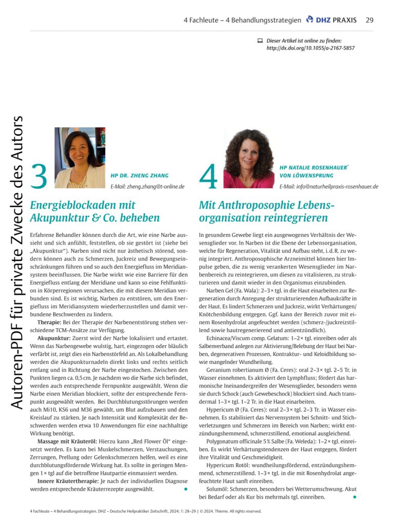 Neben meiner Praxistätigkeit liegt mir Erkennen und Erarbeiten von Zusammenhängen sehr am Herzen. Dieses Wissen gebe ich in Form von Fachbüchern und Beiträgen in Fachzeitschriften weiter.
